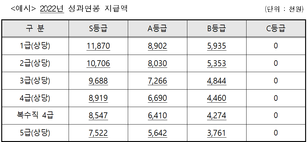 2023.12.15 - [공무원 정보] - 공무원(교사) 성과상여금 지급기준 핵심정리(지급시기 포함)