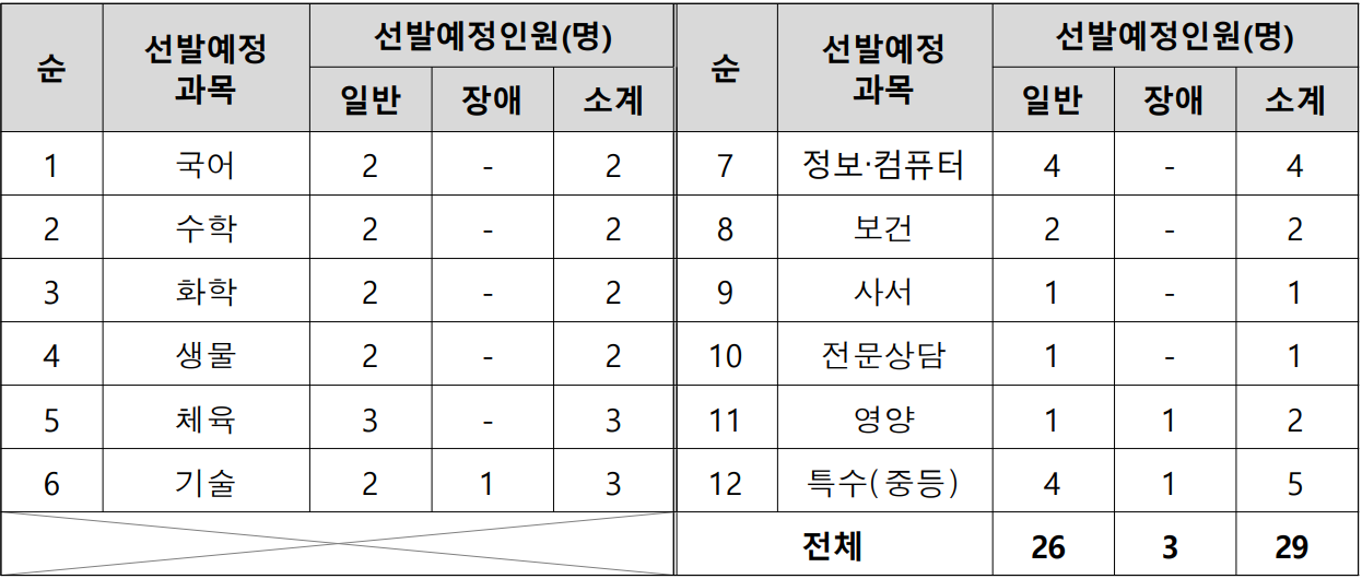 세종특별자치교육청 일반 최종 모집인원은 26명 입니다.